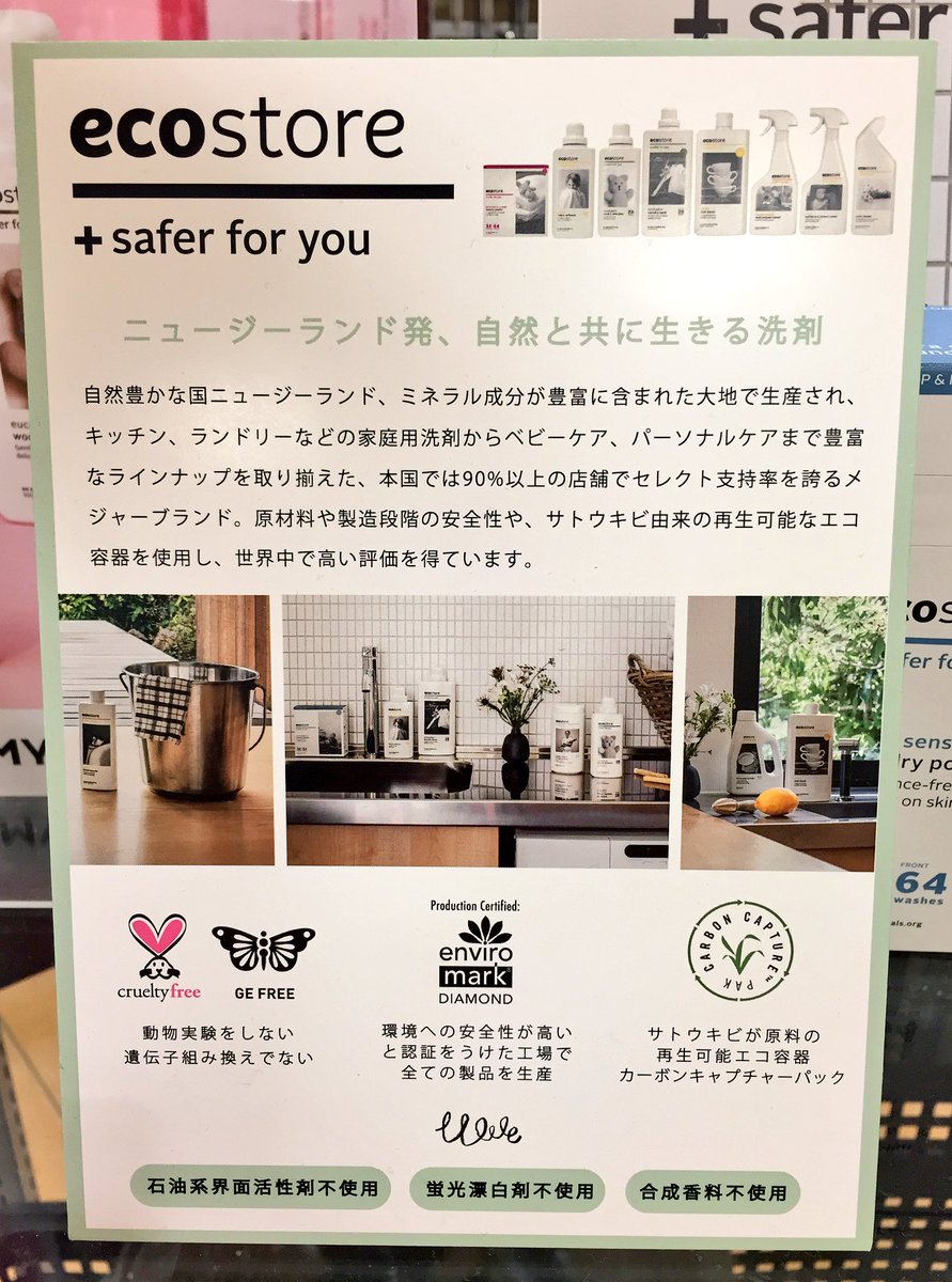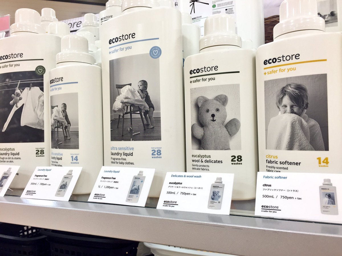 統一感のあるシンプルなパッケージが綺麗なecostore(エコストア)は、ニュージーランド発のキッチン、ランドリーなど家庭用洗剤からベビー用まで扱う自然派製品の老舗です。