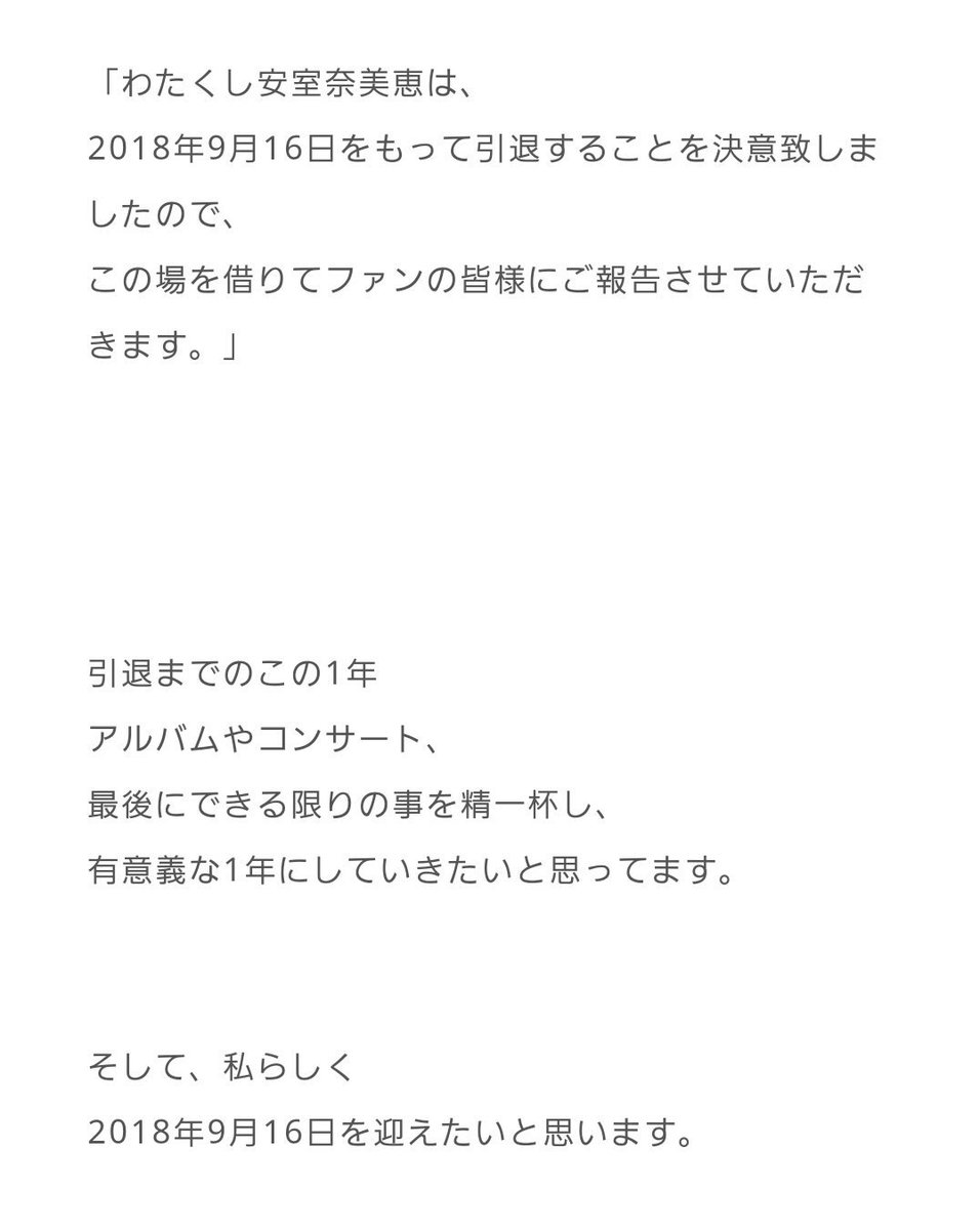 安室奈美恵さんからのお知らせ
