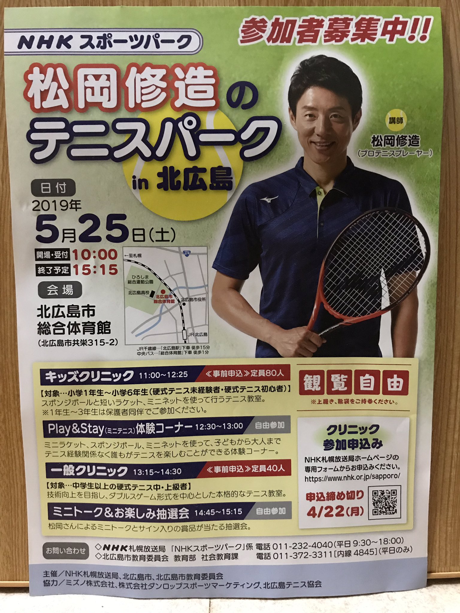 太陽神の松岡修造さん、25日に北広島でテニスパークを開催