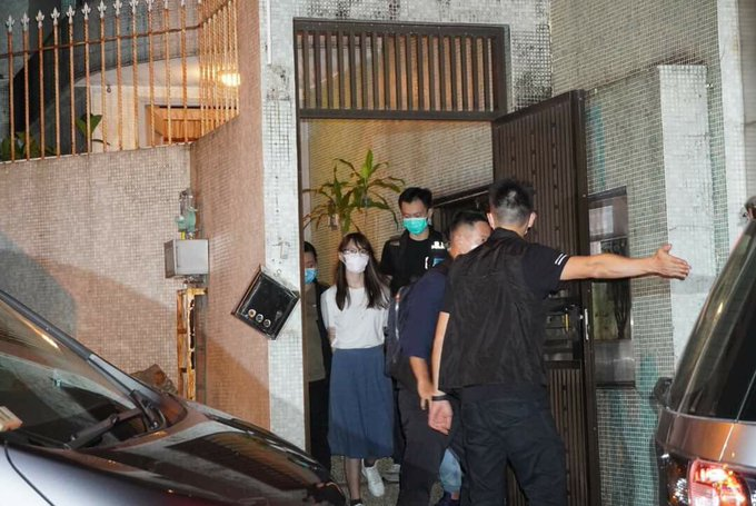 [Breaking] Agnes Chow Ting, a former member of the Demosisto, was arrested at night. More than 10 male plainclothes police officers entered Chow’s premises in Tai Po and searched for about an hour at night. https://t.co/PXrRRsG9MR pic.twitter.com/BxdcqWivWE