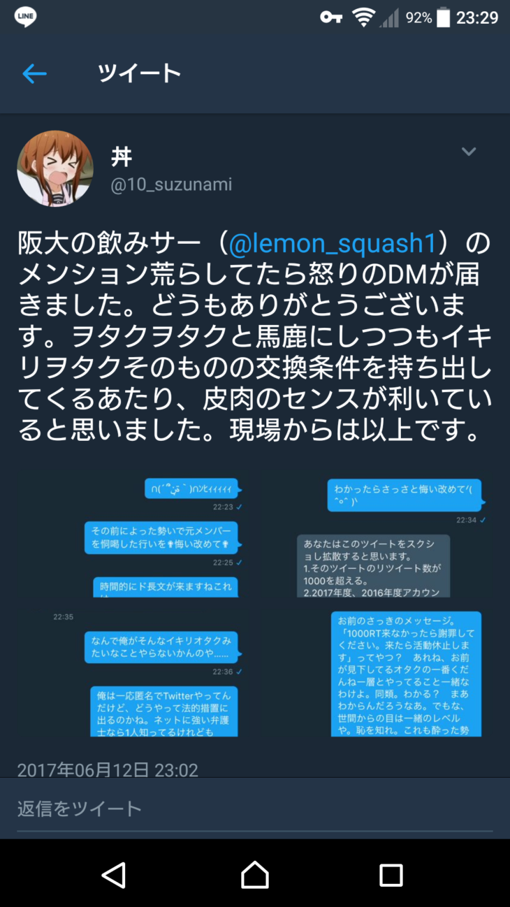 京大生(臭い)が飲みサーのネガキャンをしたところ、飲みサーのアカウントからDMが届き、それが晒される